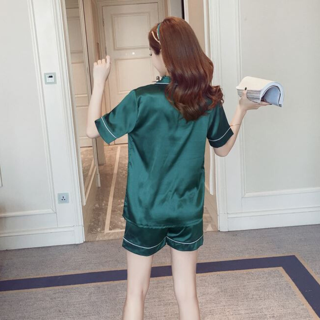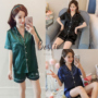 Baju Tidur Piyama Satin Polos Setelan Lengan Pendek Celana Pendek Wanita Busui Full Kancing Import